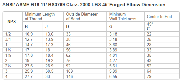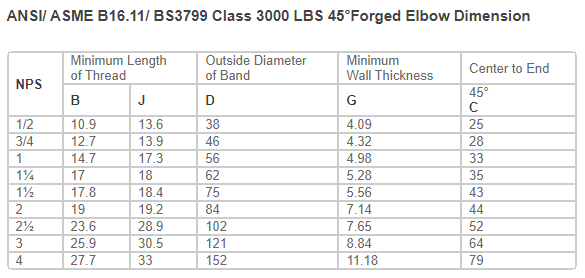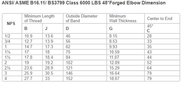 45°Forged Elbow Dimension
